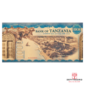 Tanzanian 1000 Shilling Kituo Cha Kigoma Aurum 24k Gold Bill – In Folder