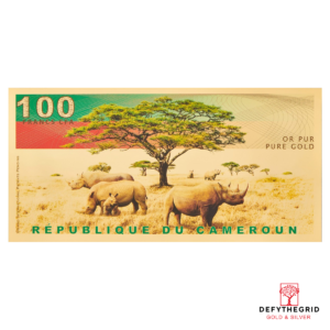 Republic of Cameroon 100 Francs CFA Black Rhinoceros Aurum 24k Gold Bill