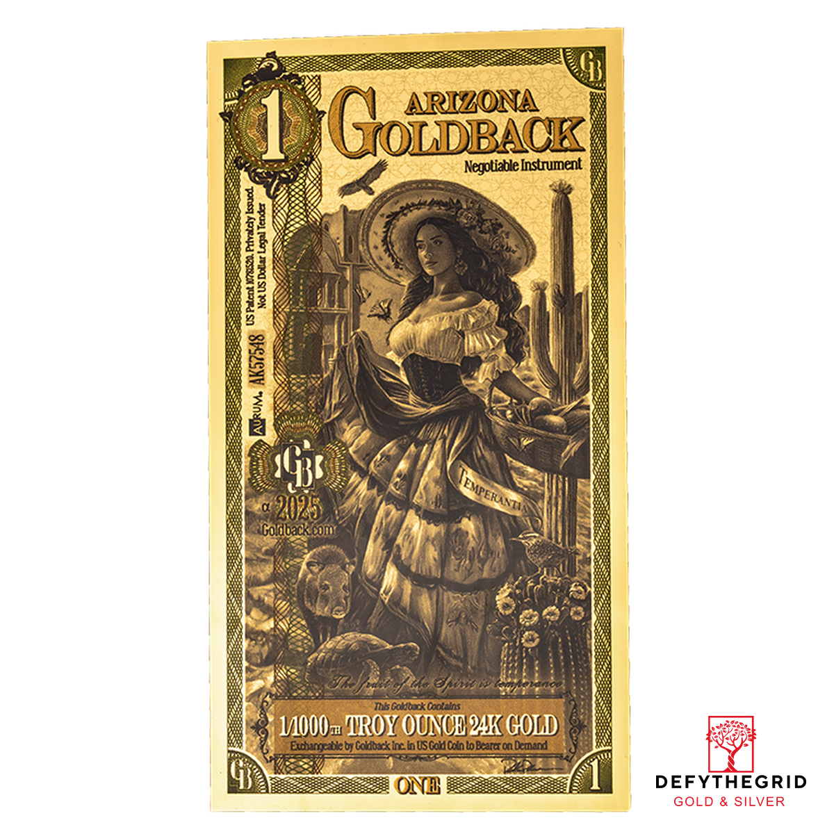Every detail of the Arizona 1 Goldback reflects the calm power of temperance: balancing the past and present, nature and human endeavor, faith and daily life. This note celebrates the quiet, enduring influence of those who shaped Arizona’s southern frontier and preserves the legacy of harmony and resilience that continues to define the region.