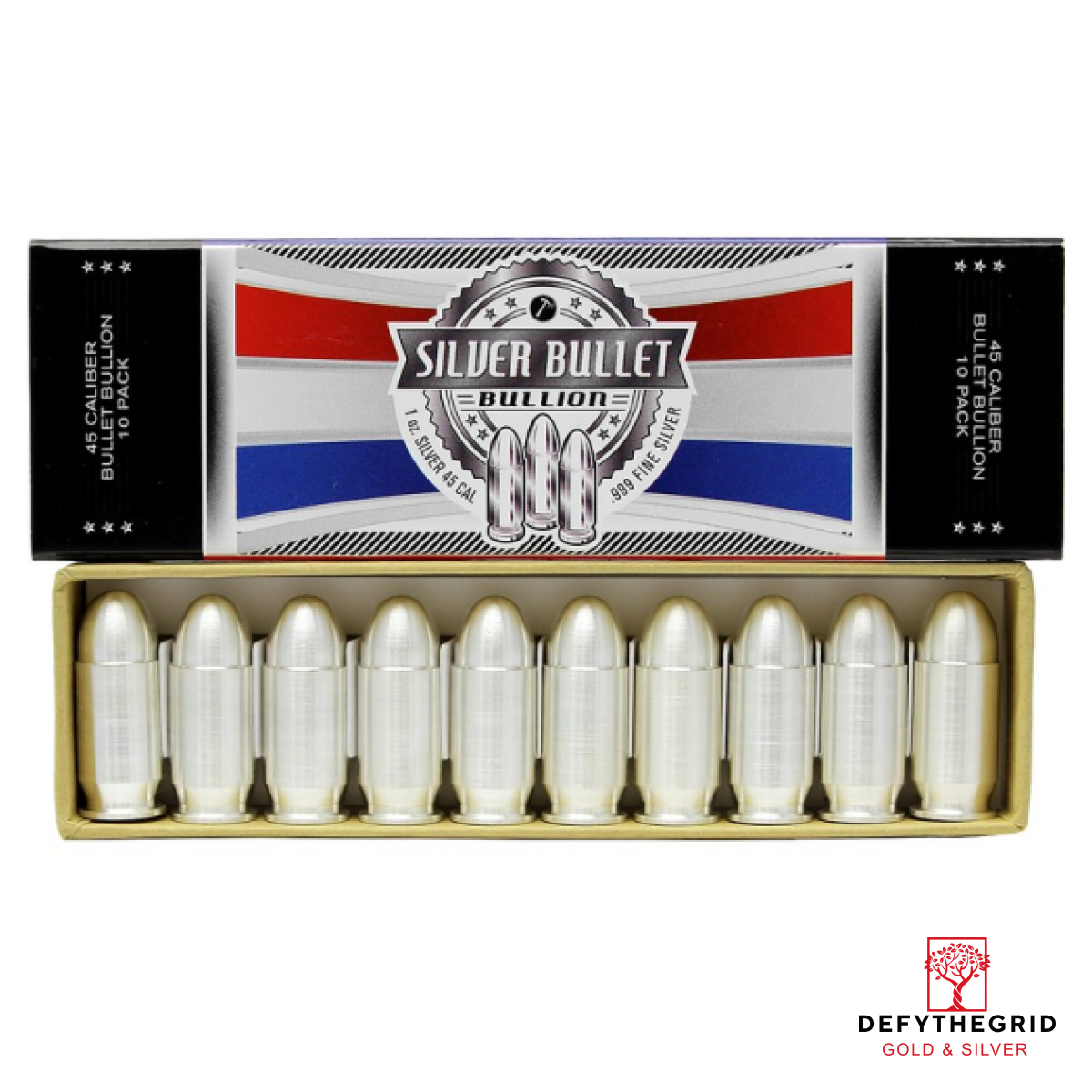 Don’t miss out on the chance to own the 1 OZ SILVER .45 CALIBER BULLET REPLICA. Enhance your collection or start your journey into silver investing today. Visit us at Defy The Grid and explore our wide range of bullion products.