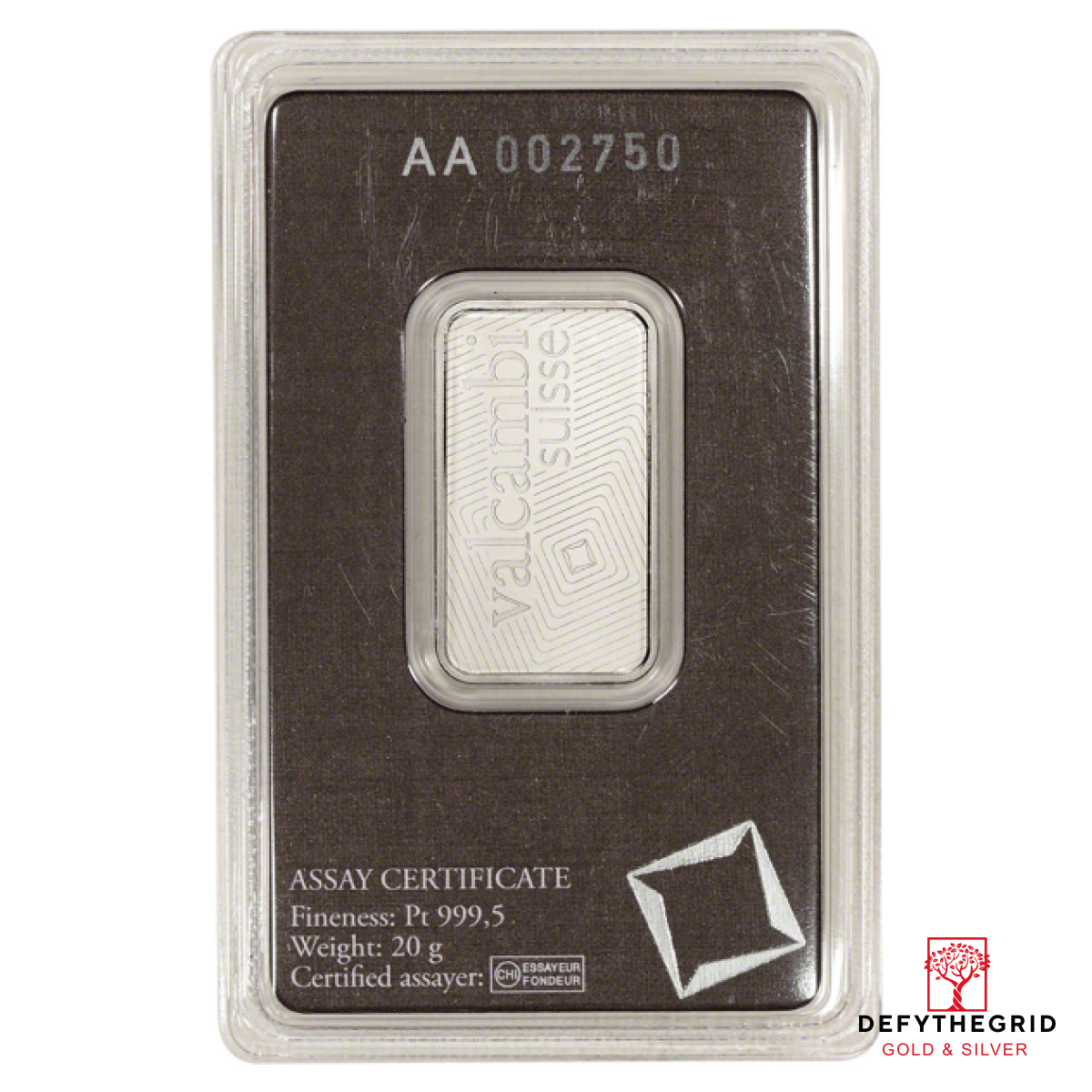 The 20 Gram Platinum Bar from Valcambi offers an exceptional opportunity for both seasoned investors and newcomers to the world of precious metals. As a trusted bullion dealer, Defy The Grid is proud to present this high-quality platinum bar, perfect for those looking to diversify their investment portfolios.