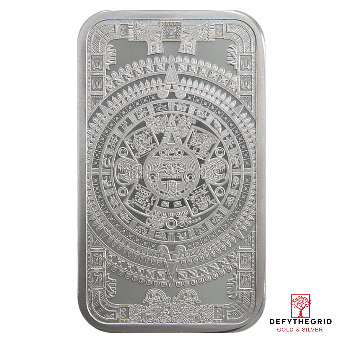 Invest in the 5 OZ Silver Bar featuring the Aztec Calendar