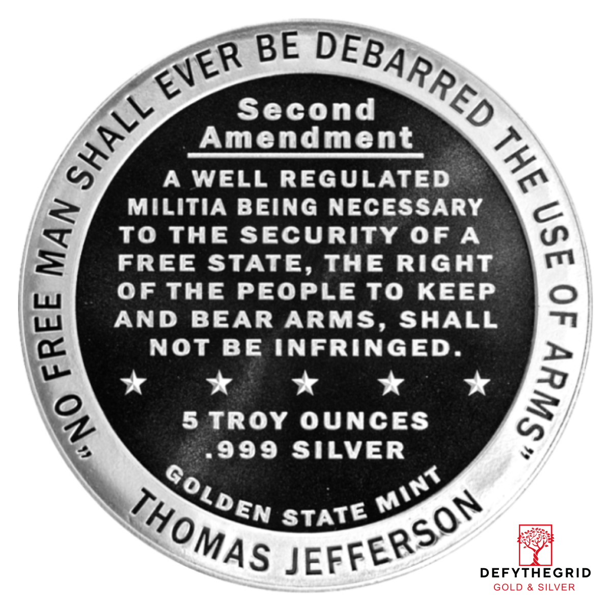 5 OZ SILVER ROUND SECOND AMENDMENT GOLDEN STATE MINT