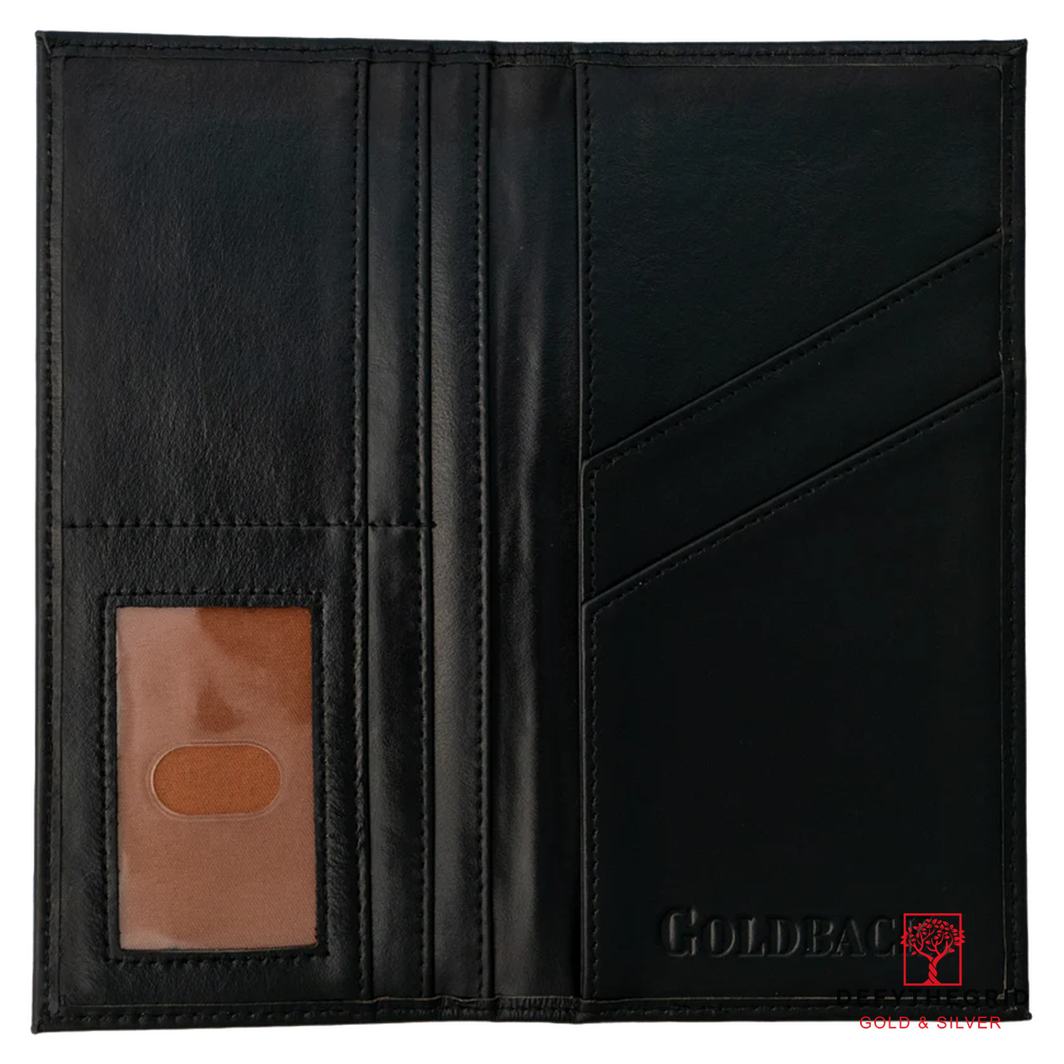 Elevate your style and investment strategy with the Custom Black Leather Goldback Wallet by Goldback Inc. This luxurious wallet is not only a fashion statement but also a practical accessory for anyone looking to buy gold or silver bullion.
