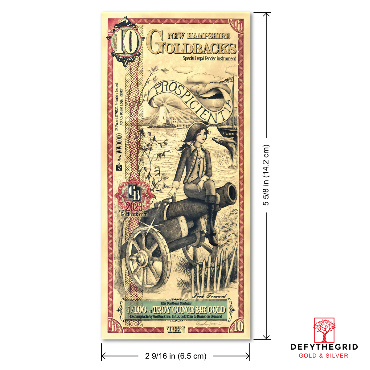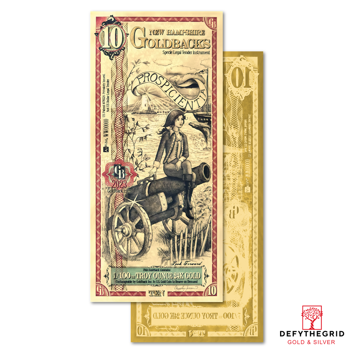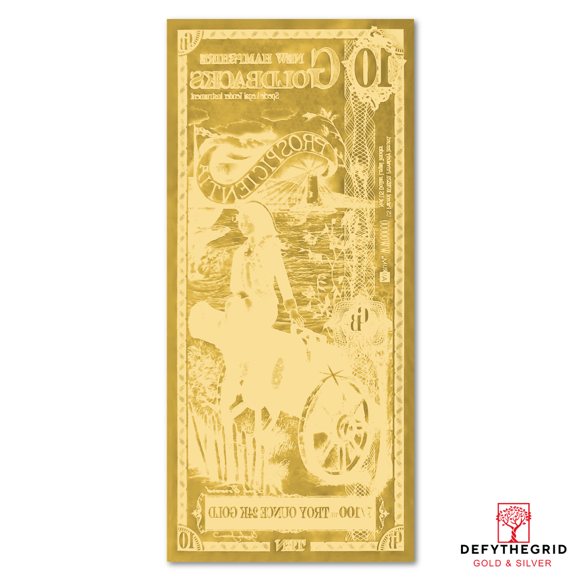 Just received my 10 New Hampshire Goldback, really like the detailed of the art. DefyTheGrid has been my go to for all my Goldbacks since I started to collect. Best prices on the web and customer service is fantastic.