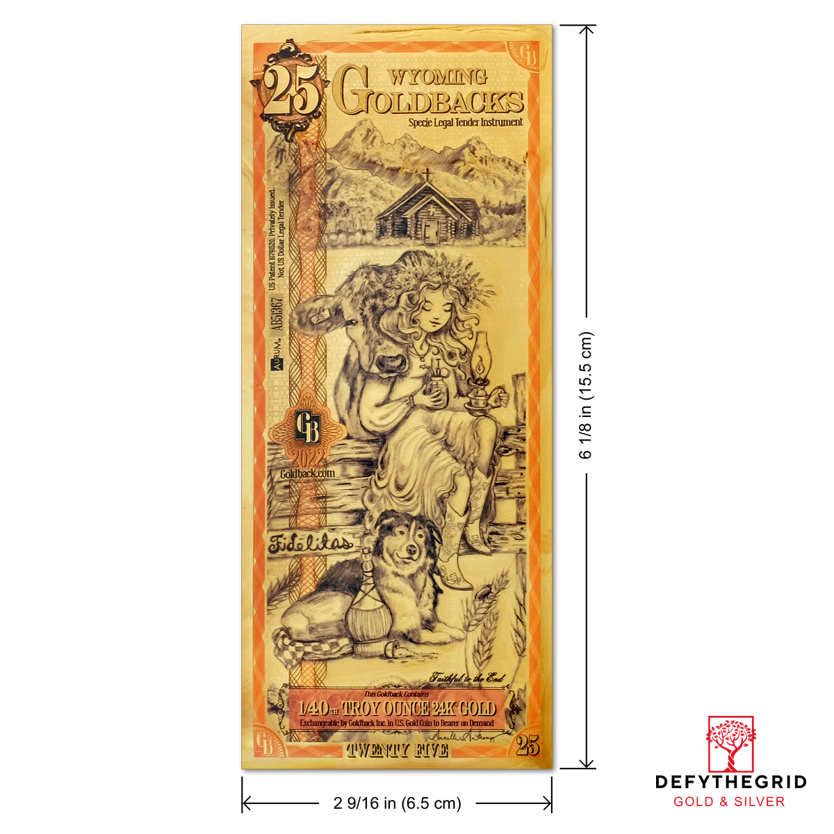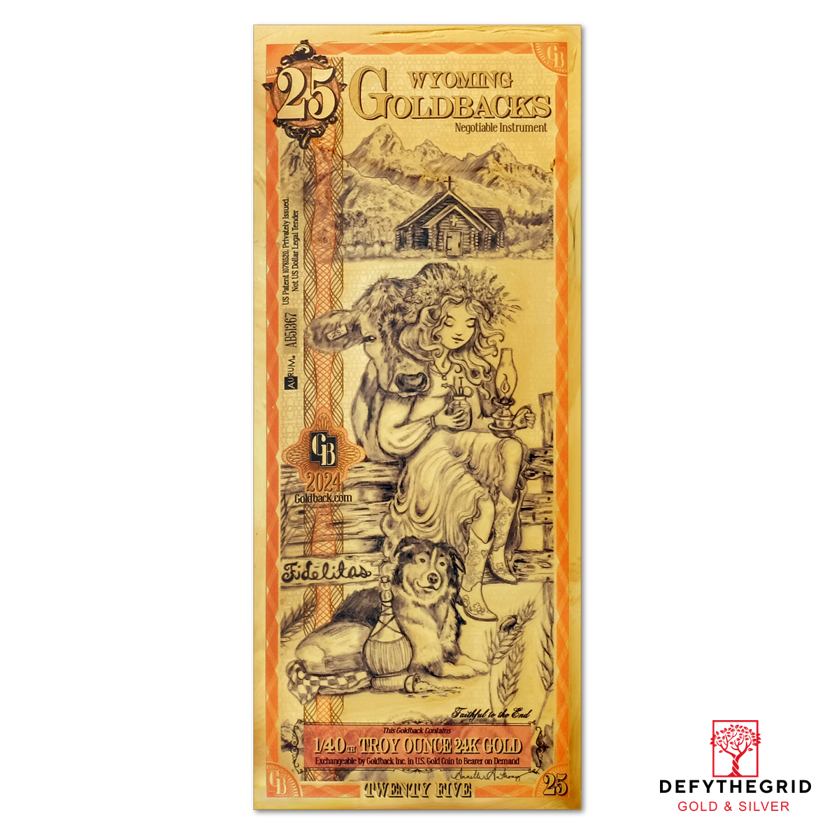 The Wyoming 25 Goldback celebrates Fideletas, the virtue of Loyalty, through a heartfelt scene set against the Grand Tetons and the historic 1925 Chapel of the Transfiguration. Drawing inspiration from the biblical parable of the ten virgins, this design embodies readiness, devotion, and steadfast commitment.